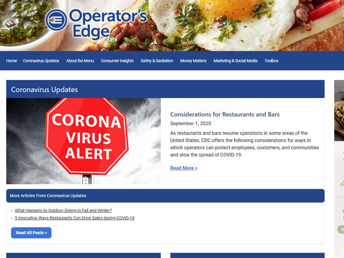 Operators-edge.com provides updates regarding coronavirus protocols, guidelines, and regulations, as well as tips and suggestions for increasing revenue using new and different channels. This dynamic and user-friendly website offers keen insight into consumer preferences and food trends that Operators can incorporate into their menus. Additionally, there are marketing and social media tips to help Operators promote their businesses, cost-saving and revenue-enhancing recommendations, and so much more.