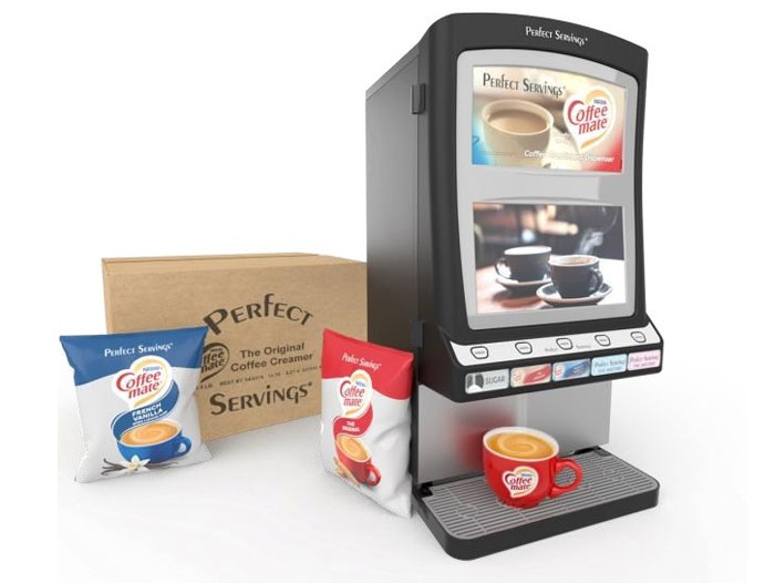 ELGIN, Ill. — United Food Group, Inc (UFG) a privately-held, dry powder mixing, packaging and dispensing equipment company will soon be rolling out a Perfect Servings® Coffee mate® branded program. The Perfect Servings® coffee condiment dispenser will soon be able to deliver Coffee mate® Original and Coffee mate® French Vanilla Creamer in conjunction with its line of sweeteners to all their coffee customers.