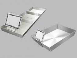 Stainless Steel Pans are an attractive addition to display cases and are designed to maximize case capacity in the deli, seafood and meat departments.  Specially-designed sign holders provide the ideal fit on pans and simplify the purchase decision by prominently displaying identifying and promotional signage.