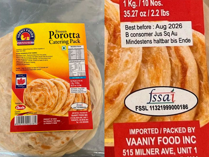 Vaaniy Foods Brand Porotta Catering Pack Recalled Due to Undeclared Milk