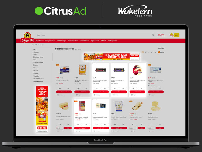 Using the CitrusAd technology, Wakefern can offer brands the ability to launch sponsored product campaigns and display media across its desktop and mobile web ecommerce platforms to enhance the shopping experience for customers.