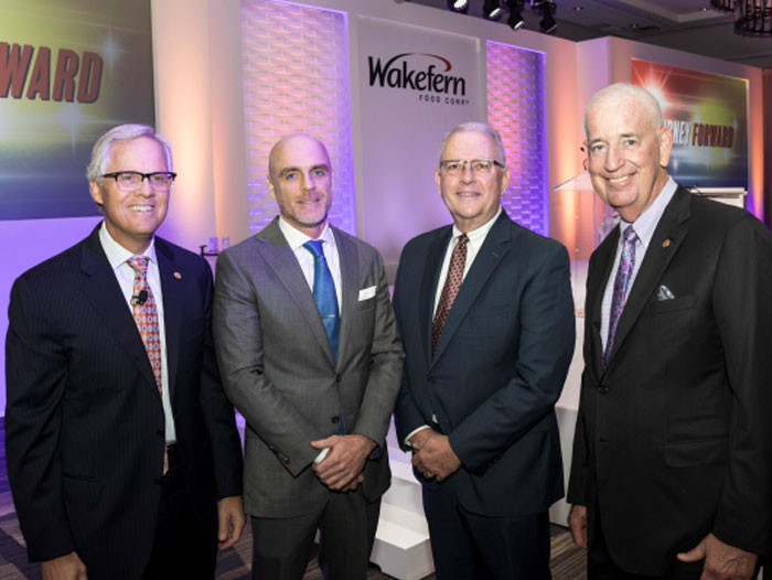 Outgoing Chairman Joseph Colalillo paid tribute to the cooperative he led for 18 years as he welcomed Sean McMenamin as the new chairman and Mike Stigers as Wakefern’s new president. McMenamin, who served as vice chairman of the board, is also president of McMenamin Family Markets, which operates two ShopRite stores in Philadelphia. It was the first annual meeting for Stigers, who joined Wakefern in June.