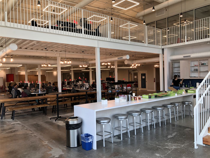 Located at 979 Springdale Road, ZeroCater’s Austin office is a 12,156-square-foot open floor plan in a former warehouse. Situated in the up-and-coming East Austin neighborhood alongside a host of innovative start-ups, the office is just three miles from Downtown and five from Austin International Airport. The team’s office has more than doubled in size along with the number of conference rooms, with food-inspired names like Fleetwood Mac & Cheese, ZZ Tapas and Bread Sheeran. The facilities team also prioritized additional storage spaces, a parent’s room and gender-neutral restrooms. Surrounded by an abundance of walkable and drivable amenities, ZeroCater’s team is stoked to mix and mingle with new neighbors like the Austin Bouldering Project, Austin Eastciders, FloSports, Friends and Allies Brewing Company and Springdale Station.