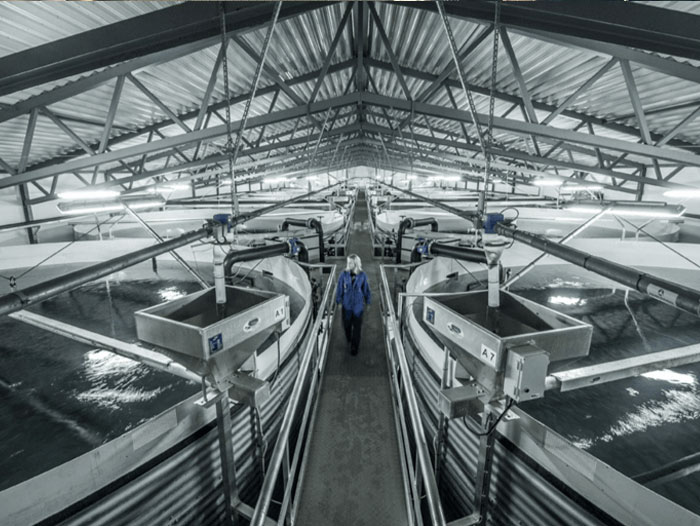 A new partnership between Norwegian aquaculture company Aquacon AS and the University of Maryland Baltimore County’s Institute of Marine and Environmental Technology (IMET) will bring an entirely new industry to Maryland’s Eastern Shore: land-based salmon farms, in which the operation is entirely inside a massive warehouse where fish are grown with virtually zero waste.