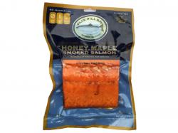 - Blue Hill Bay Honey Maple Smoked Salmon (Bronze Award in Seafood Category) utilizes European smoking and curing techniques to achieve a delectable hot-smoked, flaky, and rich buttery taste. The fully cooked Atlantic salmon is enhanced with rich honey and maple sweet notes, creating a nice complement to the natural hardwood smoke. This product is available in 1-lb. packages and currently retails at Costco. Both smoked salmon products are carefully sourced and rich in Omega-3 fatty acids.