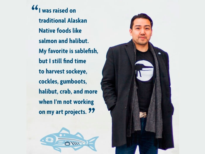ASMI is proud to announce a project designed to elevate the Alaska Native connection to our vital Alaska seafood species on the global stage. “Use of designs will be limited to ASMI. Our staff and contractors met with Rico for training on the cultural significance of the designs and their appropriate use and we’re honored to add them to our library,” says former ASMI Senior Director of Global Marketing & Strategy Hannah Lindoff who led the collaboration for ASMI.