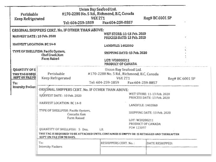 OTTAWA – Union Bay Seafood Ltd. is recalling certain Union Bay Seafood Ltd. brand Pacific Oysters from the marketplace due to possible norovirus.  Consumers should not consume and distributors, retailers and food service establishments such as hotels, restaurants, cafeterias, hospitals and nursing homes should not sell or use the recalled products described below.