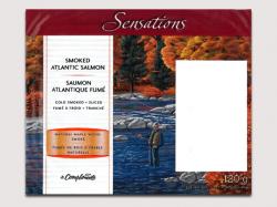 The affected Sensations by Compliments brand Smoked Atlantic Salmon was sold in 120 g packages, bearing UPC 6 23682 10999 3 and Best Before 11NO25 (November 25, 2011).