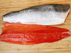 Wild salmon consumers can educate themselves to spot the differences in wild and farmed salmon as well as the differences between salmon and other fin-fish that have been mislabeled as salmon. The flesh of Copper River wild sockeye, also known as red salmon, is a brilliant red color. Copper River king salmon are a deep orange salmon color with wide sections of flesh packed with Omega 3 fatty acids. Wild salmon should have bright silvery scales. Their skin may even show marks where scales are missing at the collar and across the head. These marks are caused by gillnets, a type of fishing gear used to harvest salmon from the ocean. Wild salmon vary in size and weight and a case full of wild salmon will demonstrate this variation. Ask your reputable seafood counter for more tips on differentiating salmon from other species of fish in their cases.