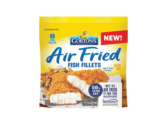 Gorton’s Air Fried Fillets are air fried before they get to the consumer which makes for a light, crispy breading that has 50% less fat. The product can be prepared in either the oven or the air fryer. These fillets combine panko breadcrumbs with whole Wild Alaska Pollock and are the perfect meal for anyone who is looking for the satisfying crunch of breaded seafood without feeling weighed down. The air fryer process used is proprietary to Gorton’s – they use hot air, not oil to cook the product.