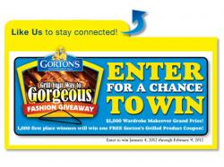 Gloucester, Mass. – With the kickoff of the New Year—and the beginning of many weight-loss resolutions—Gorton’s Seafood is announcing the “Grill Your Way to Gorgeous Giveaway.” From January 4 through February 9, 2012, entrants will have the opportunity to enter to win one of 1,000 first prizes of a coupon for a free Gorton’s Grilled product and a grand prize of a $1,000 wardrobe makeover.