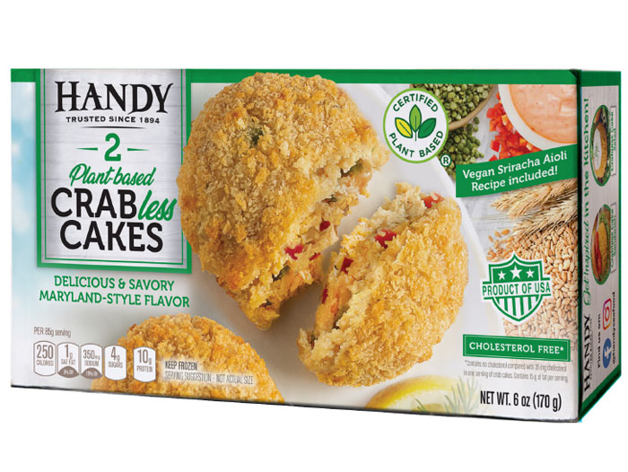 SALISBURY, MD. – Handy Seafood, America’s oldest seafood processor, is excited to launch a Plant-based Crabless Cake. Handy developed its new product to serve the fast-growing flexitarian consumer market. The product is made in their BRC plant in Crisfield, Maryland and available in grocery retailers and foodservice distribution nation-wide.