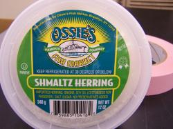 Ossie’s Schmaltz Herring is packed in a 12 oz plastic container coded 2/0311. It is a product of USA. Product was distributed throughout New York State.