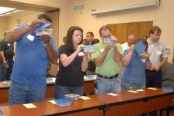 On Aug. 26, about 60 seafood workers gathered at the Mississippi State University Coastal Research and Extension Center in Biloxi to learn how to use their sense of smell to identify oil-tainted seafood. The sensory evaluation exercise was part of the Harvest from Open Waters, or HOW, training offered by the Mississippi-Alabama Sea Grant outreach program.