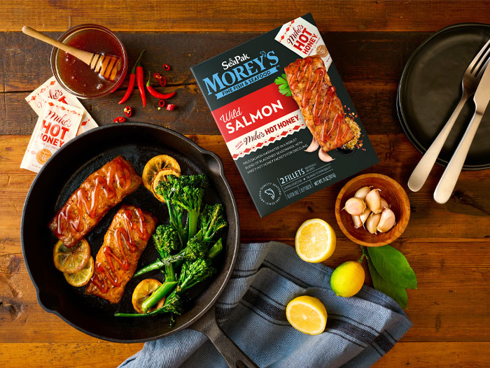 “Hot honey has skyrocketed in popularity, and we’re proud to collaborate with Mike’s Hot Honey on a new product that delivers just the right amount of sweet heat over the salmon’s smoky marinade,” said Ciera Womack, Director of Marketing, Seafood, for the Consumer Brands Division of Rich Products Corp., parent company of Morey’s. “We are sure that shoppers will love having these flavors at their fingertips for an easy and satisfying weeknight meal.”