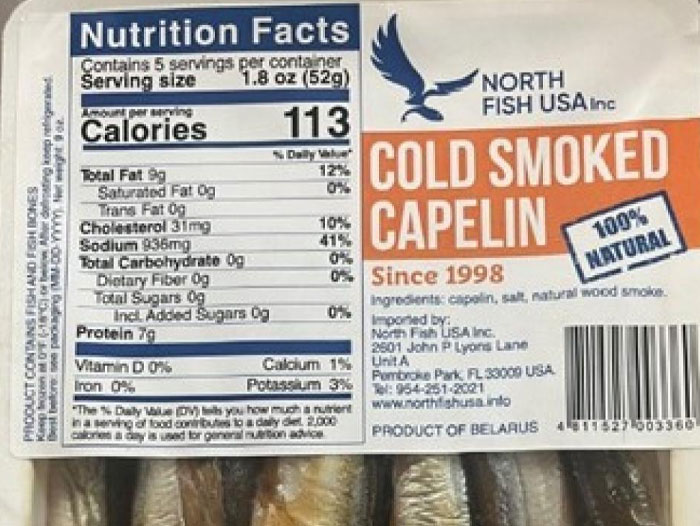 North Fish USA Inc. Recalls ‘Cold Smoked Capelin’ Because of Possible Health Risk
