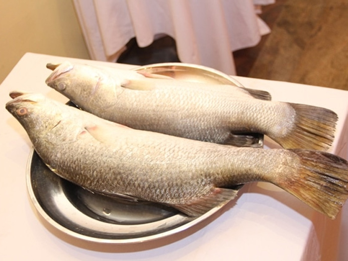 The barramundi, which is also knows as Asian sea bass, is grown in floating cages about 12 miles off the coast of Trincomalee in northeastern Sri Lanka.