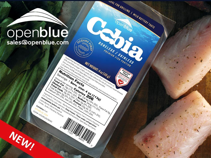 FORT LAUDERDALE, Fla.– -Open Blue Cobia is helping its consumers eat healthier by proudly bearing the American Heart Association’s Heart-Check mark on Open Blue´s new line of premium retail, boneless and skinless cuts. Open Blue is a seafood champion producing open ocean raised premium Cobia white fish.