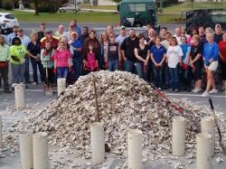 The Oyster Recovery Partnership delivered two large truckloads of cleaned and aged oyster shells to Perdue’s Corporate Office parking lot where volunteers filled nylon bags with the empty shells. The bags are a key ingredient in the oyster production process. Young larvae will attach themselves to the recycled shells through a setting process using large tanks filled with water at the University of Maryland Center for Environmental Science Horn Point Oyster Hatchery in Cambridge, where the larvae are produced. Once the larvae attach to the shell, the baby oysters (now called “spat”) will be distributed among the 30 tributaries participating in the 2015-2016 Marylanders Grow Oysters program.