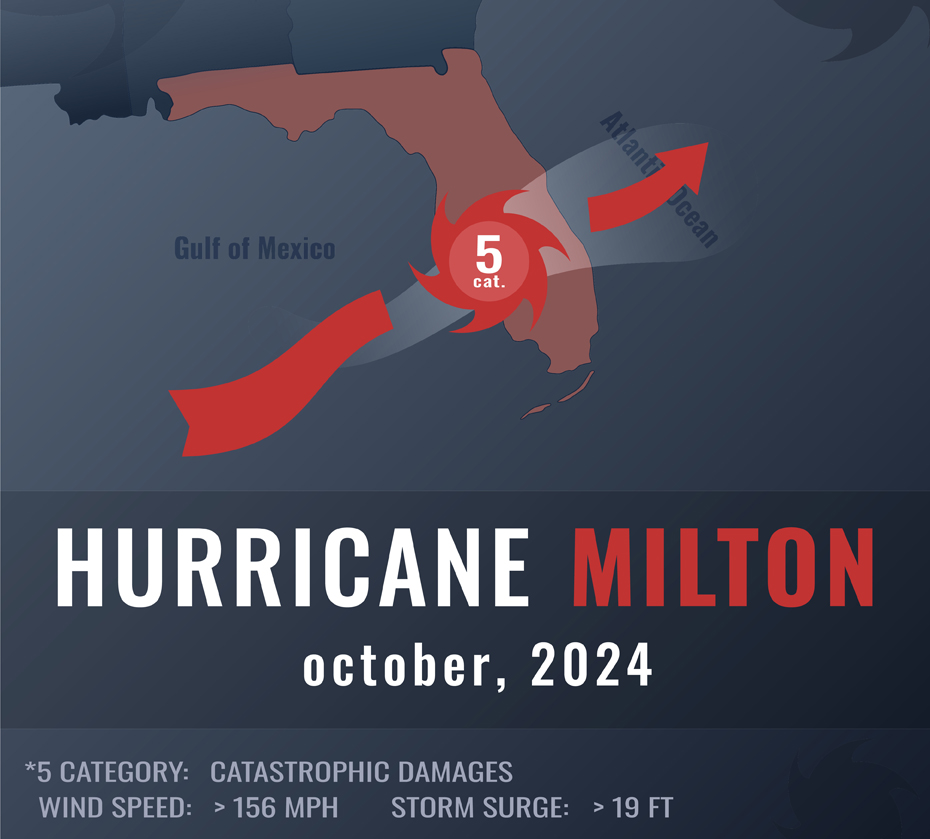 Hurricane Milton made landfall in the U.S. near Siesta Key, Florida, in the Gulf of Mexico as a Category 3 hurricane on October 9, 2024.