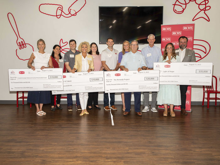 Rich’s Consumer Brands Charitable Fund, in partnership with the Davis Love Foundation, donated a total of $75,000 to four southern Georgia nonprofits at a check-presentation ceremony today at Rich’s Café, 1867 Demere Rd., on St. Simons Island.