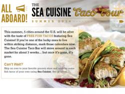 A complete list of the Sea Cuisine Taco Bar Tour dates can be found on SeaCuisine.com/tacotour. Taco Bar customers and fans of Sea Cuisine can tweet and post about their experience using the hashtag, #UpgradeYourTaco, as they follow the truck from city to city. Live market updates, recipes, photos, and general tour information for each city can also be found by following Sea Cuisine on Twitter.com/SeaCuisine, Facebook.com/SeaCuisineMeals, Pinterest.com/SeaCuisine, and Instagram.com/seacuisinemeals#.