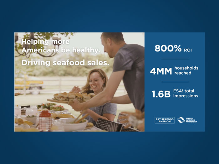 Remarkable results from a fall Eat Seafood America! (ESA!) pilot campaign showed for every $1 spent on ads driving consumers to buy seafood at retail there was a measurable $9 increase in seafood purchases, achieving an overall 800% return on investment. Seafood Nutrition Partnership