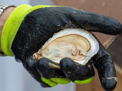And yet the hoodies and rubber overalls worn by the men beside me are almost spotless. This is all the more remarkable because they are moving much, much faster than me. By the end of the day, each of them will have shucked about five times as many oysters as I have.