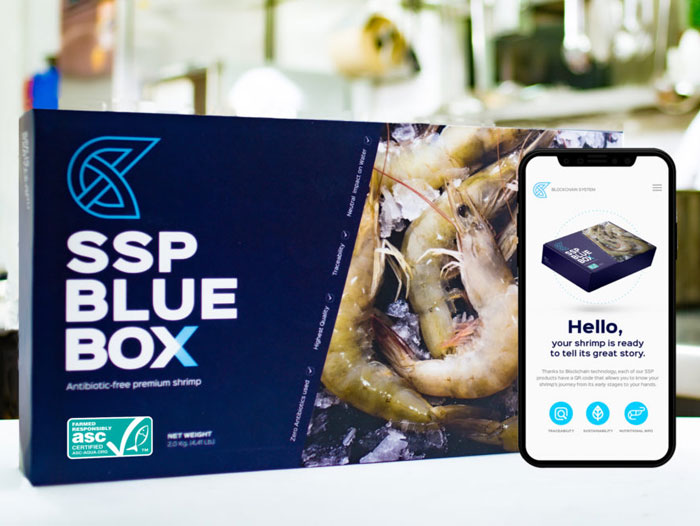 Each package of SSP BLUE BOX shrimp is stamped with a QR code that consumers can scan and in matter of seconds get to know where, when, who, and how their shrimp was farmed and processed, and trace it in every stage so that they can trust they are buying a premium quality and a safe product.