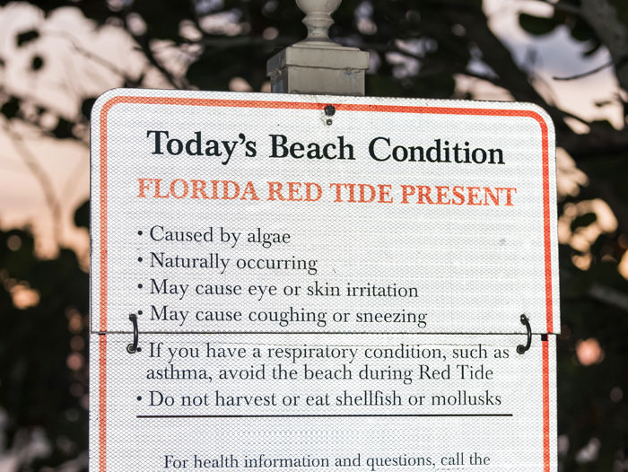 Four water samples this week showed bloom levels of Red Tide offshore, generally around Port Manatee. The Florida Department of Health in Hillsborough County has issued a health advisory, warning of the possibility for people to experience respiratory irritation because of Red Tide in lower and middle Tampa Bay.