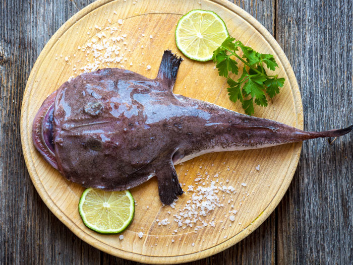Monkfish (Lophius americanus) is a species of bottom fish that inhabits the waters of the Greater Atlantic region and is targeted by commercial fishing fleets from Maine to North Carolina. Monkfish has firm, white, sweet-tasting meat akin to that of lobster. Its flavor has made monkfish a popular substitute for traditional lobster dishes, such as bisques and rolls. Additionally, monkfish is considerably cheaper than lobster, making it an excellent option for those who wish to enjoy the latter and don’t want to break the bank. Monkfish is an excellent candidate for slow cooking recipes, such as stews and chowders, but it’s also great grilled, baked, broiled, or fried.