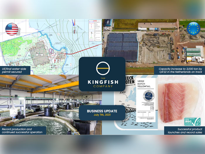 The Kingfish Company [Euronext: KING] secures final water side permit for US farm in Maine, reports Q2 2021 record sales, production, and harvest levels, and achieves higher sales prices while production capacity ramps up.