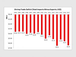 As shown in the chart, the shrimp trade deficit in 2017 was the second highest ever recorded for the United States.