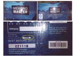 - 15-lb. cases containing “MEKONG MASTER Frozen Swai Fillet,” with lot code VN 147 VI 1351 and “BEST BEFORE” dates of “12232018,” “12242018” and “12252018.”