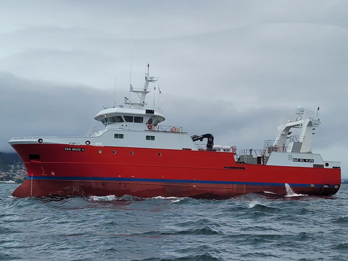 The Erin Bruce, built in 1978, was the first and pioneer vessel in the Argentine scallop fleet. The new vessel, built by Astilleros Armon shipyard in Spain, will honour the name and continue the legacy of the original.