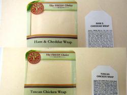 • 5-oz plastic packages containing one “Tuscan Chicken Wrap.”