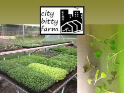 Microgreens are whole plants that germinate from seeds and form two seed leaves (cotyledons), which are followed by the true leaves that begin to look more like the mature plant. In later stages of growth, as the true leaves become larger, microgreens are considered a different culinary product. Baby leaf greens typically sold in grocery stores are larger than the specialty products sold by City Bitty Farm.