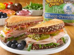 - Wheat+Protein: With more than half of Americans trying to consume more protein, Nature's Own Life® Wheat+Protein delivers 8 grams of protein and 2 grams of fiber per slice. Simple Sandwich Solution: Sweet and Savory Turkey-Blueberry Sandwich