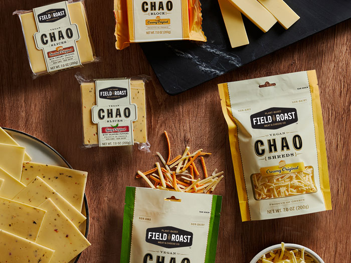 CHICAGO–Greenleaf Foods, SPC, owner of Field Roast Grain Meat Co™ (“Field Roast”), announced today that its portfolio of Chao Creamery dairy-free cheeses is now available at over 18,000 retail locations nationwide. Following this fall’s launch of five new Chao Creamery flavors and forms, Walmart more than doubled its distribution of the product line to more than 2,000 store locations and added the new Creamy Original Shreds and Mexican Style Blend Shreds.