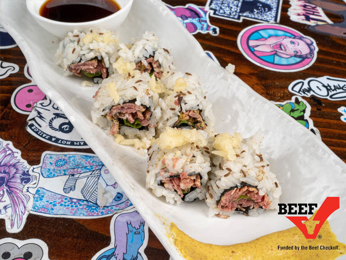 WASHINGTON — Today, on International Sushi Day, the North American Meat Institute (NAMI), a contractor to the Beef Checkoff, is kicking off its Beefshi debut on NYC restaurant menus. Beefshi is an innovative new sushi-style concept that features convenient beef products like pastrami, roast beef, summer sausage, hot dogs, corned beef and bologna prepared in rolls with rice and vegetables.