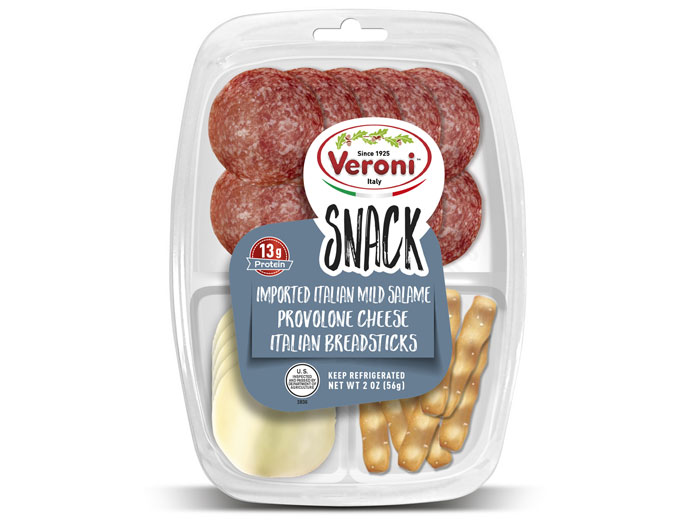 Correggio (Italy) – Veroni, the beloved maker of Italian cured meats and specialties unveils its brand-new snack line that combines a selection of authentic Italian salami with provolone cheese, dried fruit, and breadsticks. The four pairing options come in a practical and easy-to-open packaging to enhance your breaktime, while offering a real Italian tasting experience. With the right amount of protein, Veroni’s snacks recharge your batteries everywhere, at the office, at school or after gym.
